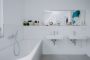 Beim Wohnhaus W handelt es sich um die Sanierung eines freistehenden Einfamilienhauses aus den späten 1950er Jahren. Die vorgefundenen Grundrisse zeichneten sich durch Großzügigkeit und klare Strukturen in der Funktionszuordnung aus. Es gab einige erhaltenswerte Gestaltungsmerkmale an der Fassade aus Travertin und Betonfertigteilen, welche aufgearbeitet wurden, wie auch die Kastenfenster und die Verbundfenster mit Bleiglaseinsätzen. Neben der Sanierung der Gebäudehülle, war die Hauptaufgabe, die innere räumliche Struktur den Bedürfnissen der neuen Hausbewohner anzupassen. Im Erdgeschoss erhielt die Küche einen Ausgang zum Garten. Sie wurde zum Essbereich hin geöffnet, um mehr Bewegungsraum und eine Belichtung von Süden her durch die Raumflucht zu erhalten. Im Dachgeschoss wurde die Raumstruktur komplett verändert, um drei Kinderzimmer, ein Schlafzimmer und ein großes Bad zu schaffen. Hierfür haben wir die vorhandenen kleinen Gaupen durch zwei große ersetzt und das Nord-West-Zimmer um die Fläche des ehemaligen Balkons durch das Aufsetzen eines Kubus in Holzbauweise vergrößert.